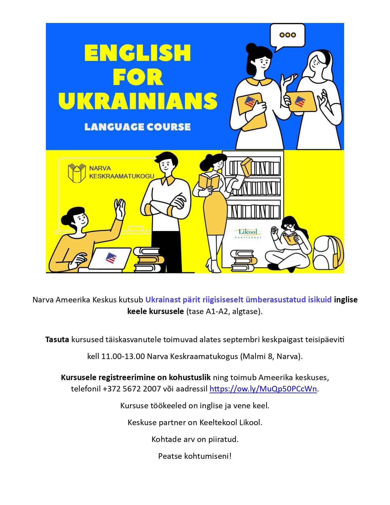 Palume kõigile üritustele eelnevalt registreeruda (tel. 35 91467)