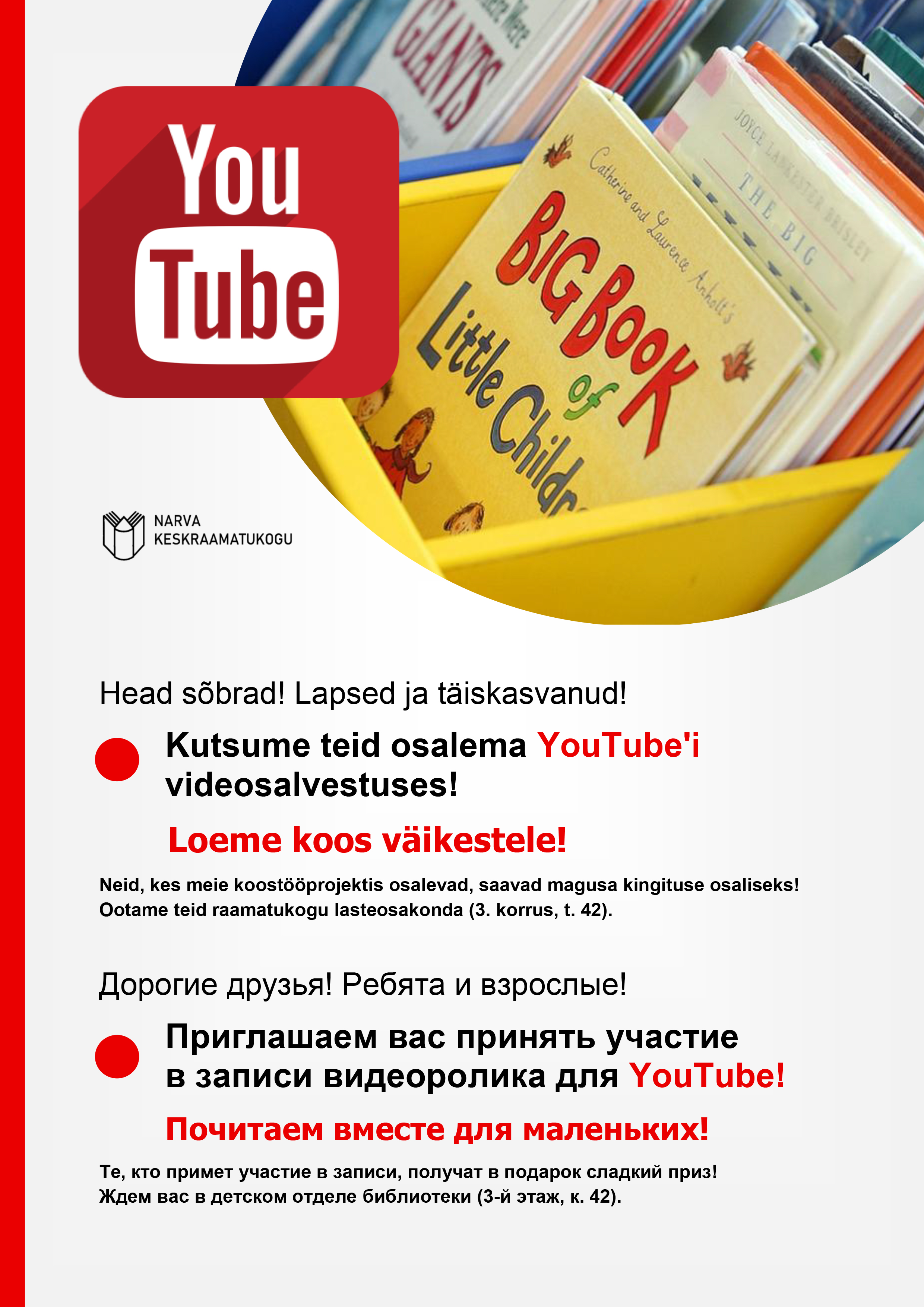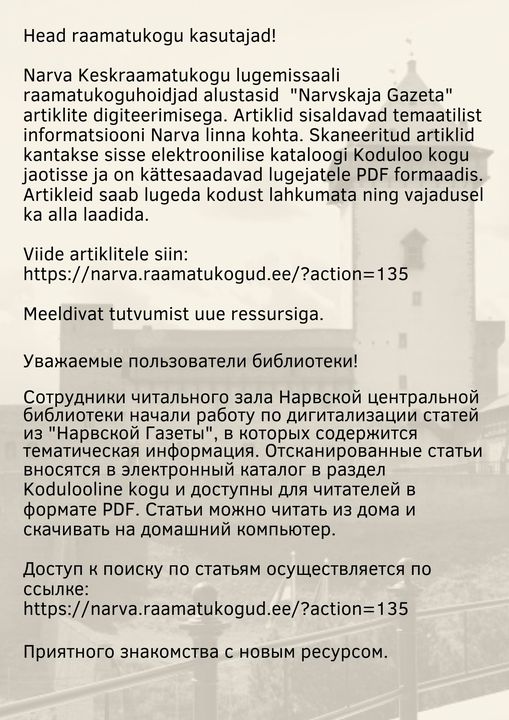 Esmaspäeval, 6. jaanuaril kl 17.00, Narva Keskraamatukogus Malmi 8.