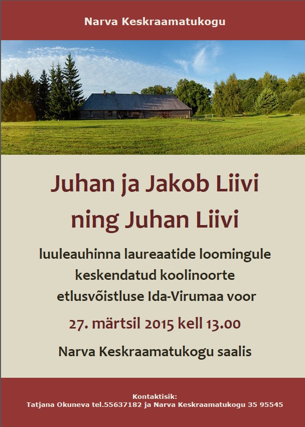 Info: Tatjana Okuneva tel. 55637182 ja Narva Keskraamatukogu 35 95545