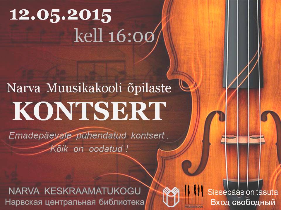 Emadepäevale pühendatud kontsert toimub Narva Keskraamatukogus 12. mail kell 16.00 esimese korruse saalis.