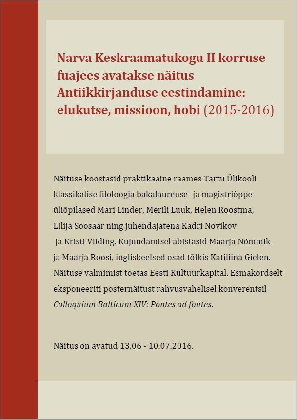 Antiikkirjanduse eestindamine: elukutse, missioon, hobi (2015-2016)