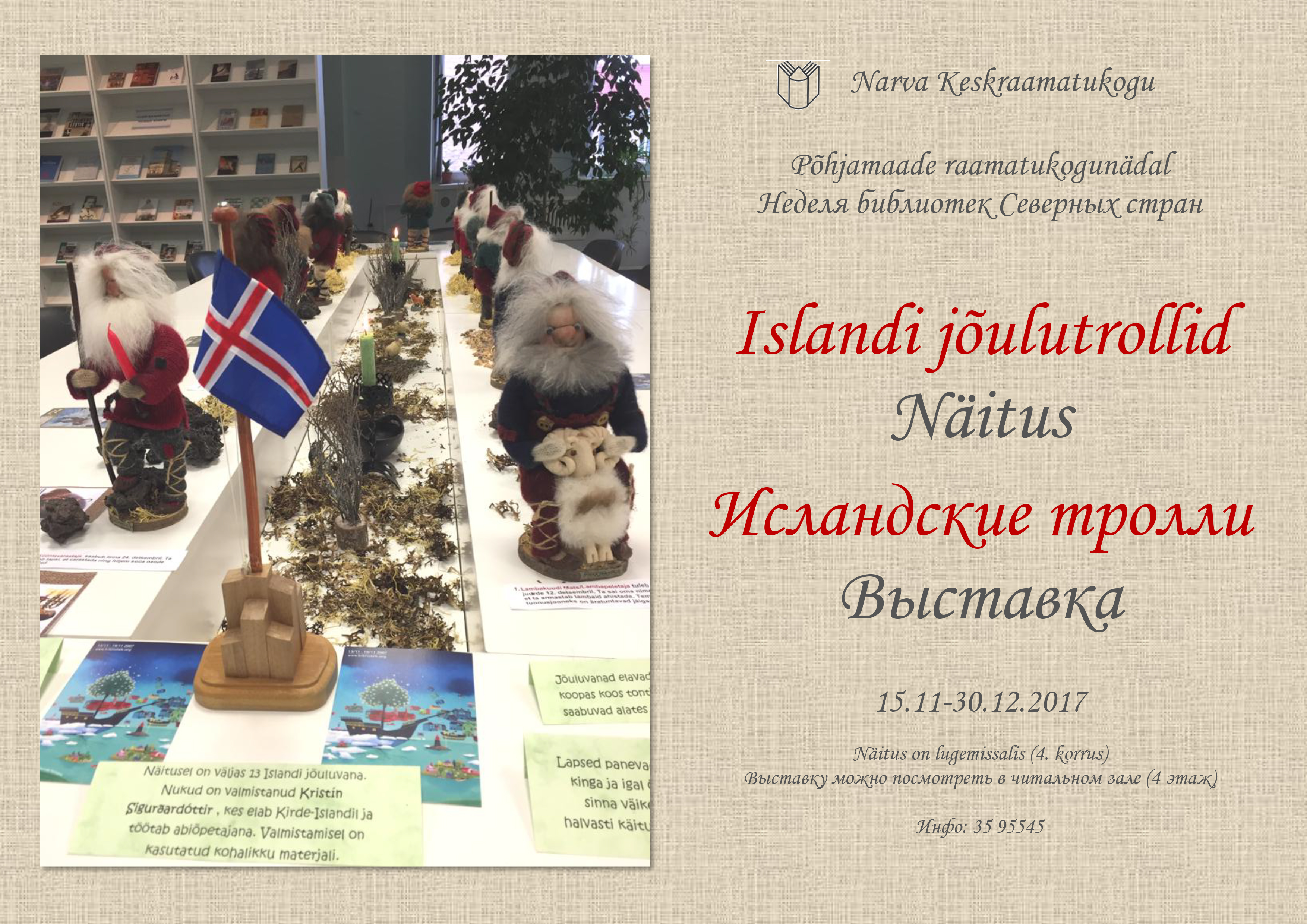 Põhjamaade raamatukogunädala raames Islandi jõulutrollide näitus avatakse 15. novembril ja jääb avatuks detsembri lõpuni.