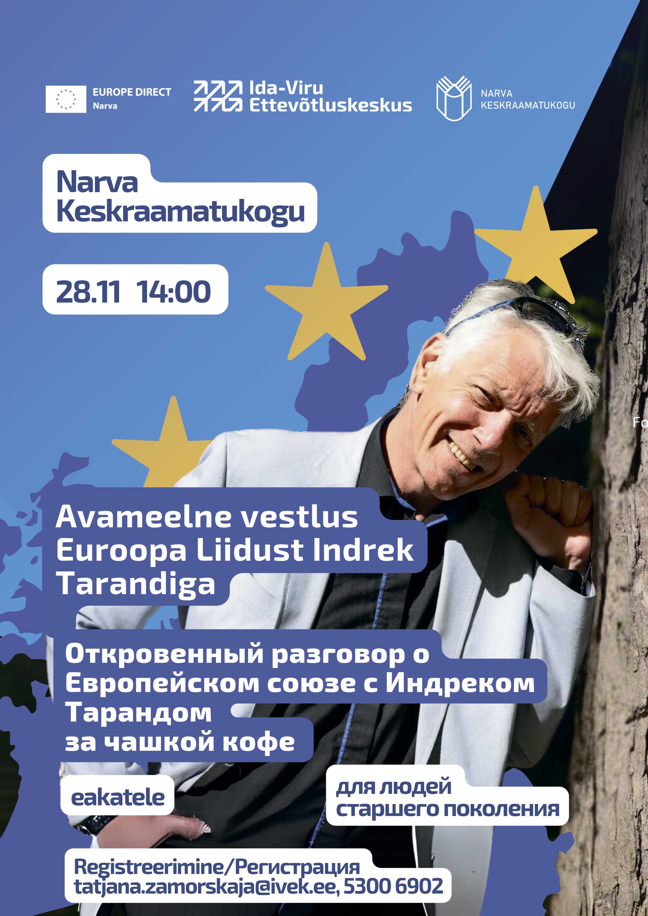 Kutsume teid kohtumisele kuulsa Eesti poliitiku Indrek Tarandiga, mis toimub 28. novembril kell 14:00 Narva Keskraamatukogus.