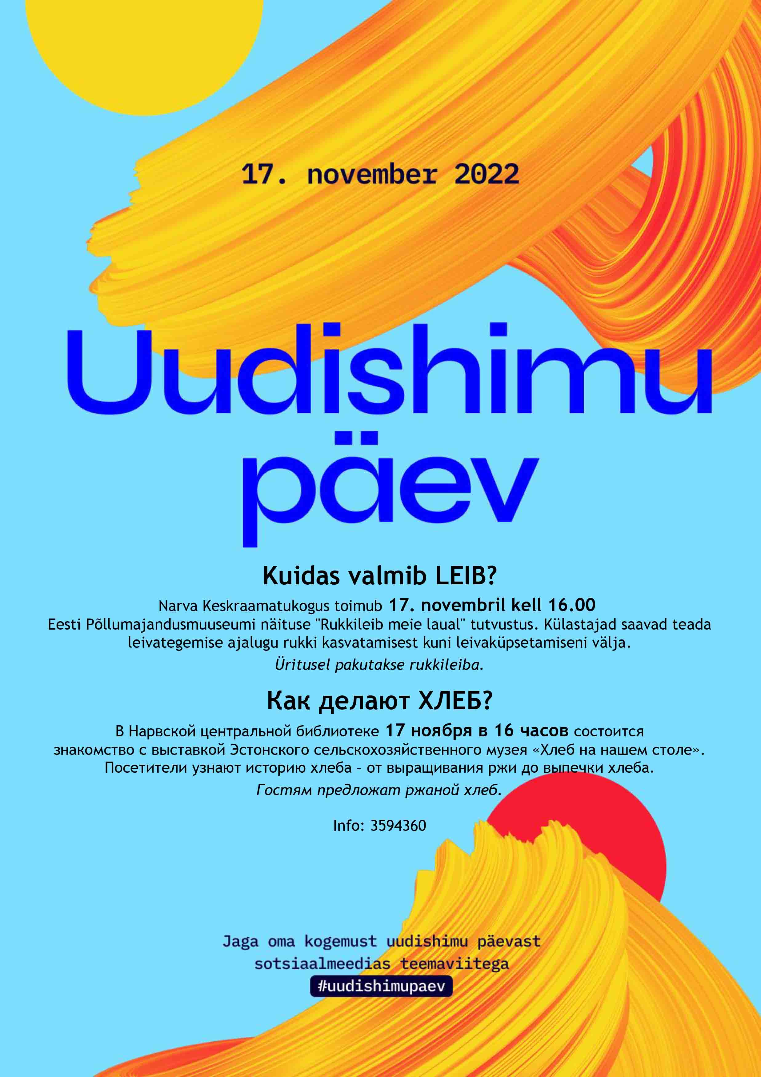 Neljapäeval, 17. novembril kell 16.00 tutvustatakse Narva Keskraamatukogu Eesti Põllumajandusmuuseumi näitust “Rukkileib meie laual”.