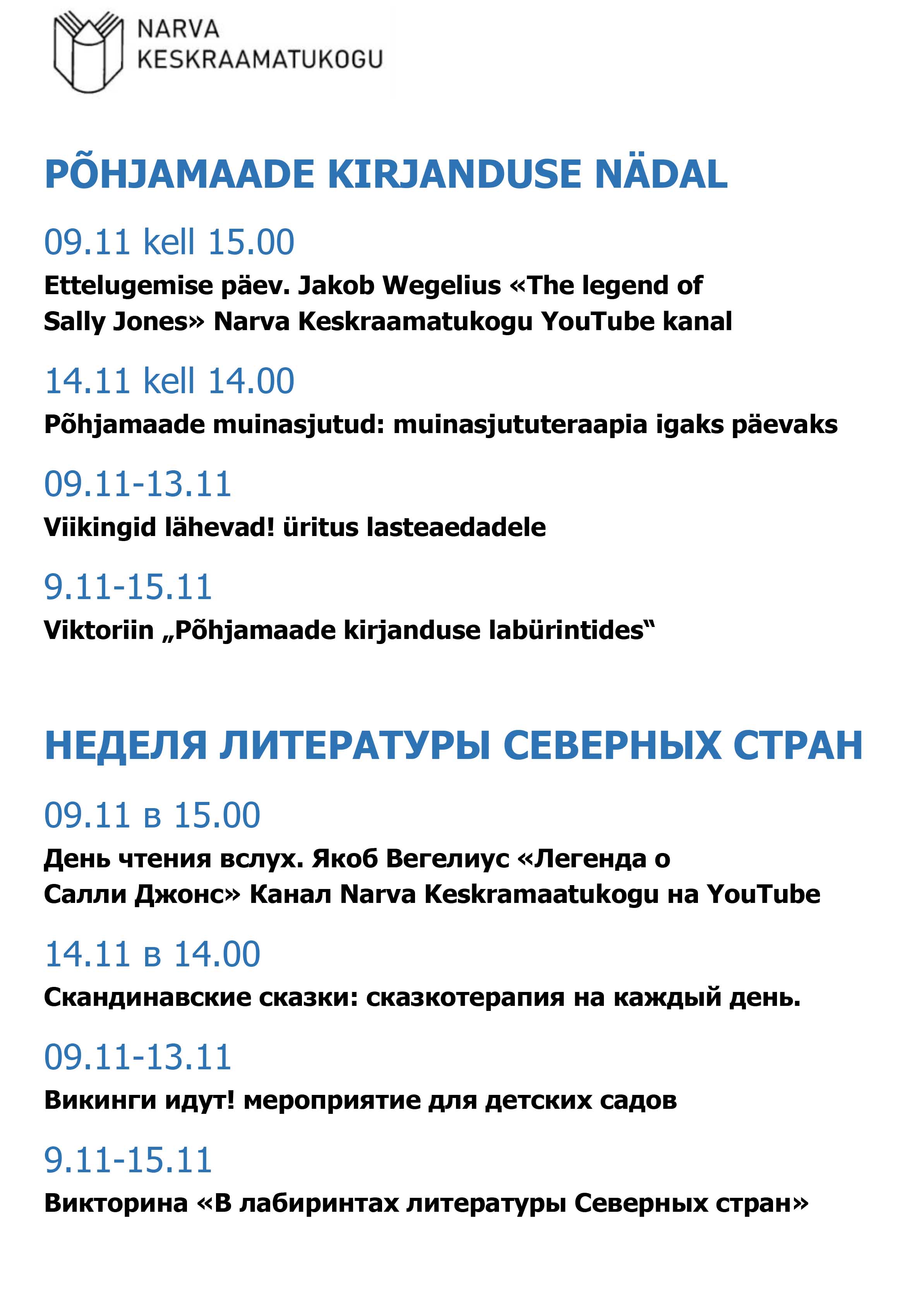 Laupäeval, 21. novembril kl 12.00, Narva Keskraamatukogus (Malmi 8).