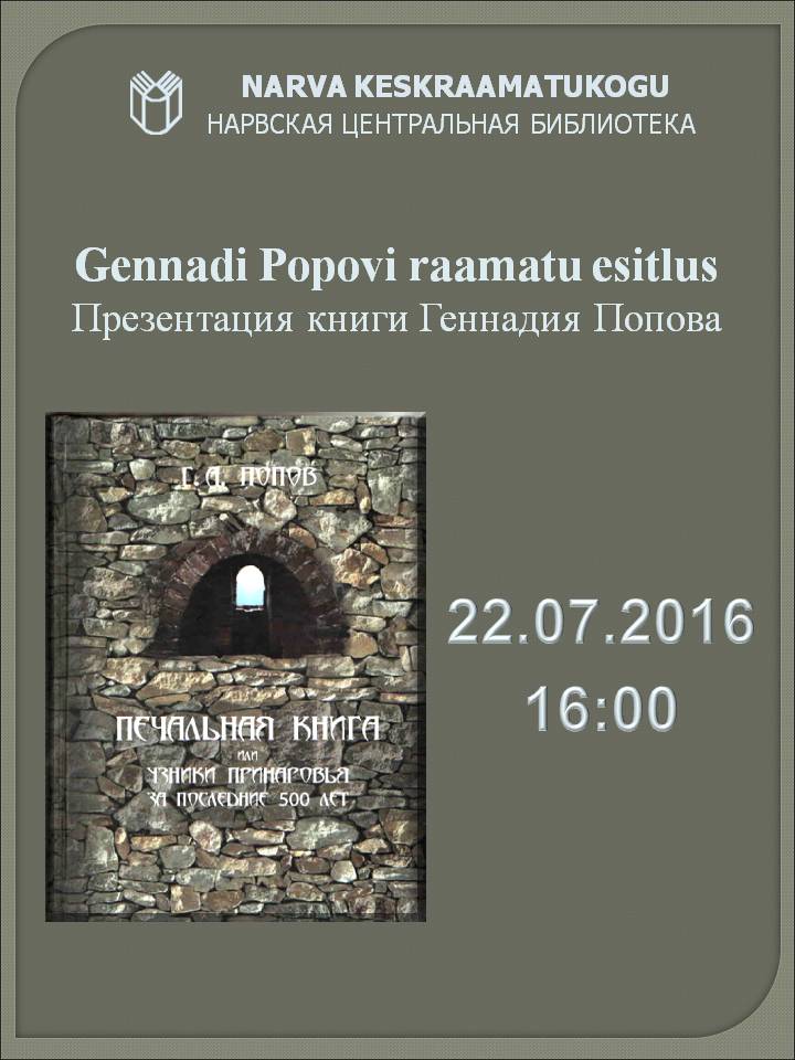 Нарвская центральная библиотека приглашает на встречу с автором и презентацию книги «Печальная книга или узники Принаровья за последние 500 лет».   Встреча состоится 22 июля в 16 часов.