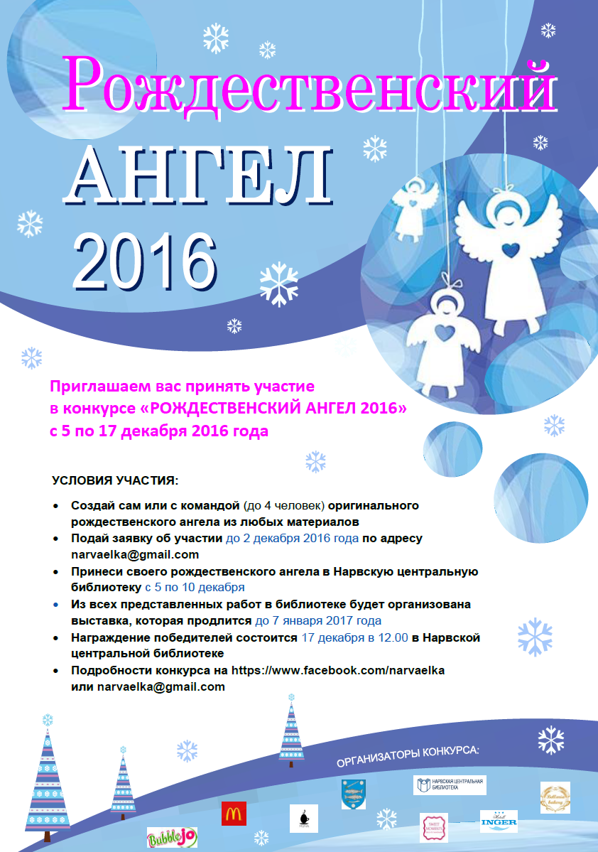- Принеси своего рождественского ангела в Нарвскую центральную библиотеку с 5 по 10 декабря