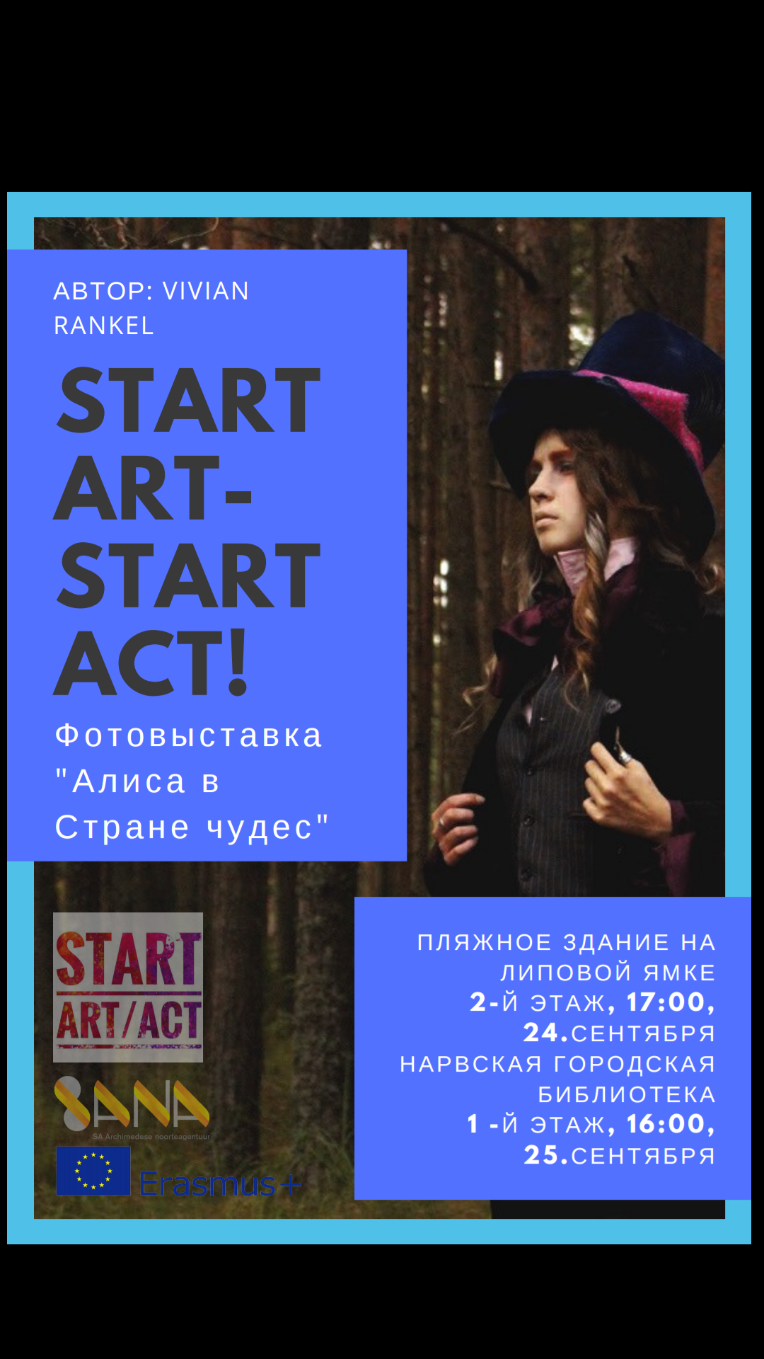 Фотовыставка открывается в рамках проекта EV100«Искусство в библиотеку». Данный проект предлагает молодым талантливым художникам (14-26 лет) возможность экспонировать свои работы (живопись, скульптуру, декоративно-прикладное искусство и др.) в библиотеках Эстонии.