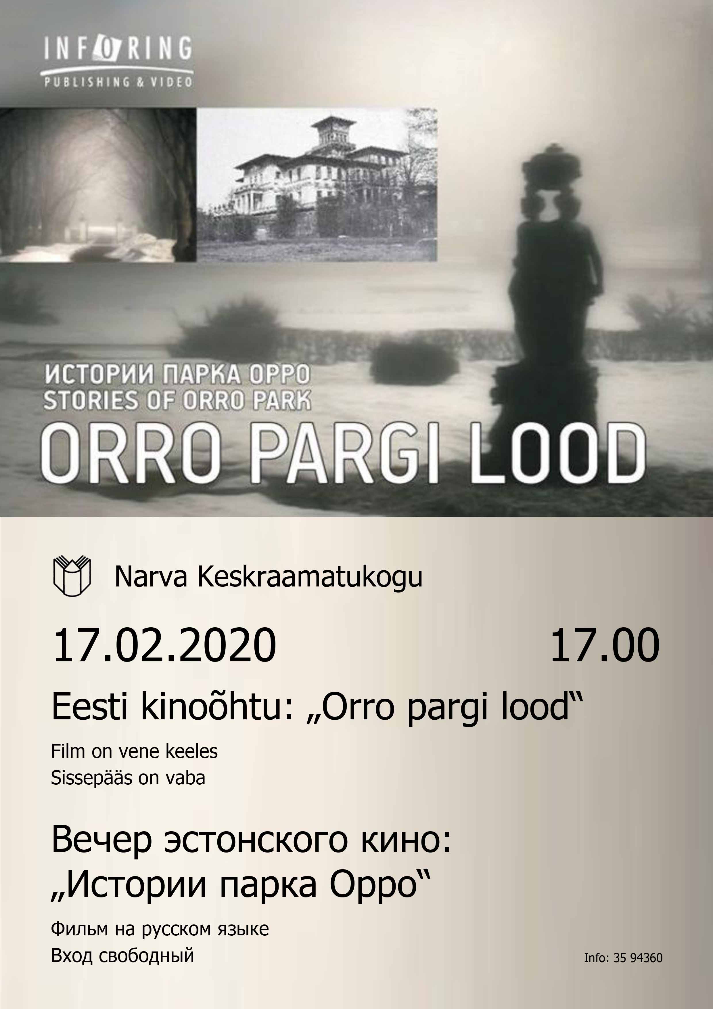 В понедельник, 17 февраля в 17.00 Нарвская центральная библиотека приглашает на показ документального фильма «Истории парка Орро».