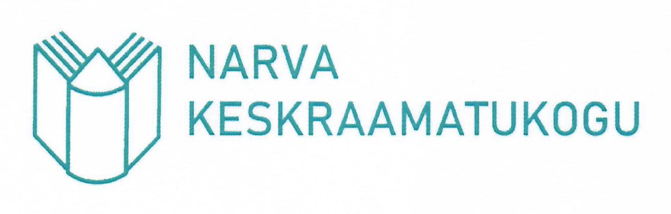 Narva Keskraamatukogu logol võib näha avatud raamatut. Graafiliselt kujutatud raamatust paremal pool on kiri „Narva Keskraamatukogu“.