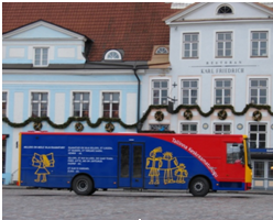 В библиотечном автобусе каждый может сам посмотреть, что представляет собой библиотека на колесах, сколько книг в эту библиотеку помещается и какими услугами там можно пользоваться. И взрослые, и дети могут проверить свои знания в викторине «Эстония», которая проводится на эстонском и на русском языке. Правильные ответы можно будет искать на книжной выставке, где представлены книги об Эстонии на эстонском, русском и английском языках. Кроме этого любознательных еще ждут: викторина о комиксах, кроссворды на разные темы и литературные бинго для детей, подростков и взрослых. Победители викторин могут выбрать себе в подарок одну из книг на эстонском языке. В библиотечном автобусе под руководством библиотекаря можно сплести себе браслет в национальных цветах. Детей ждут рисовать праздничные картинки.