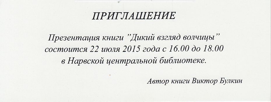 Презентация книги "Дикий взгляд волчицы" состоится 22 июля с 16.00 до 18.00 в Нарвской центральной библиотеке.