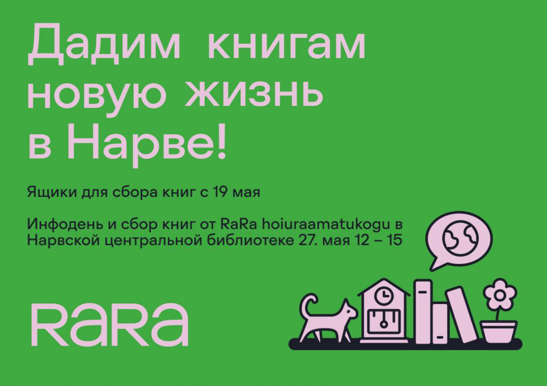 27 мая в Нарве состоится кампания по сбору книг от Эстонской национальной библиотеки из цикла «ДАЙТЕ КНИГЕ НОВУЮ ЖИЗНЬ». Ящики для сбора книг будут установлены в Нарвской центральной библиотеке начиная с 19 мая.