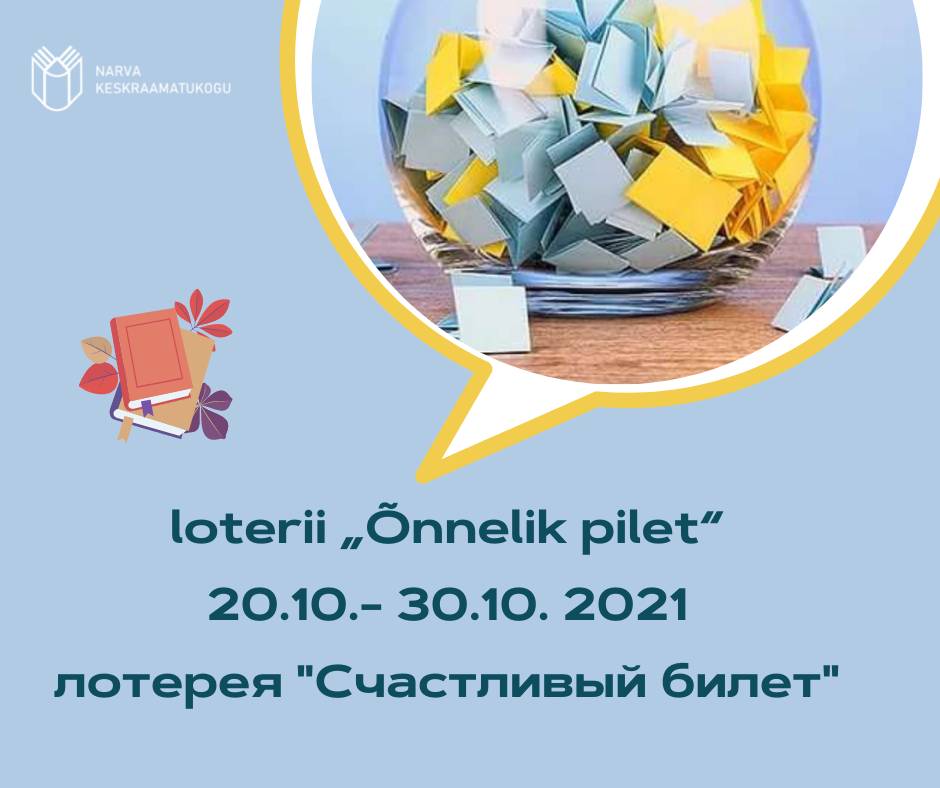С 20 по 30 октября повсеместно по всей Эстонии проходит библиотечная декада. В эти дни читателей Нарвской центральной библиотеки читателей ждет сюрприз - лотерея «Счастливый билет».